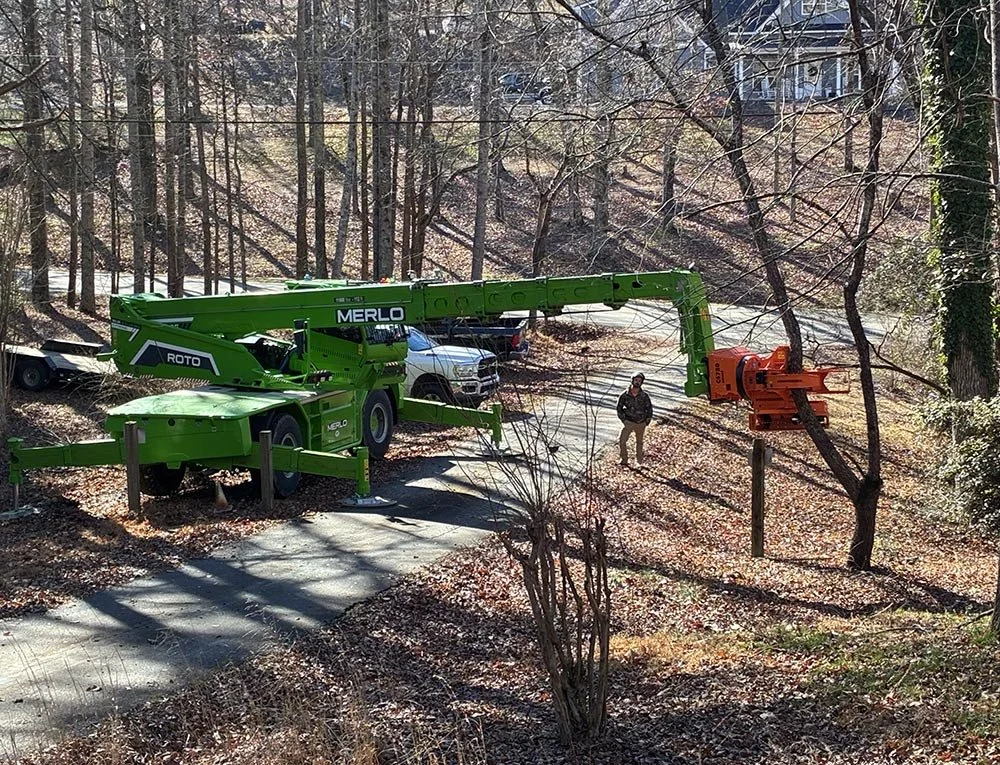With a staggering 115-foot reach and 360-degree rotation, we can dismantle massive trees from your driveway or the street. This means no heavy equipment tearing up your turf, no cracked sidewalks, and no damage to your landscaping. We don't just "cut" trees; we lift them out of tight spaces—over roofs, power lines, and pools—with "surgical" control that traditional crews simply cannot match.